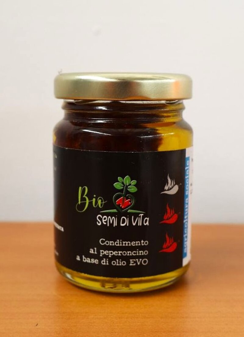 L'olio al peperoncino (chiamato “olio santo” nel Sud Italia) è un condimento infuso, vibrante e piccante, ottenuto lasciando macerare peperoncini secchi o freschi in olio extravergine d'oliva di alta qualità. L'olio al peperoncino è un jolly che sta bene quasi ovunque e dà il meglio di sé come tocco finale (a crudo) sulla famosa pasta aglio, olio e peperoncino, pizze e focacce, carni bianche, bistecche o pesce alla griglia e verdure saltate in padella.